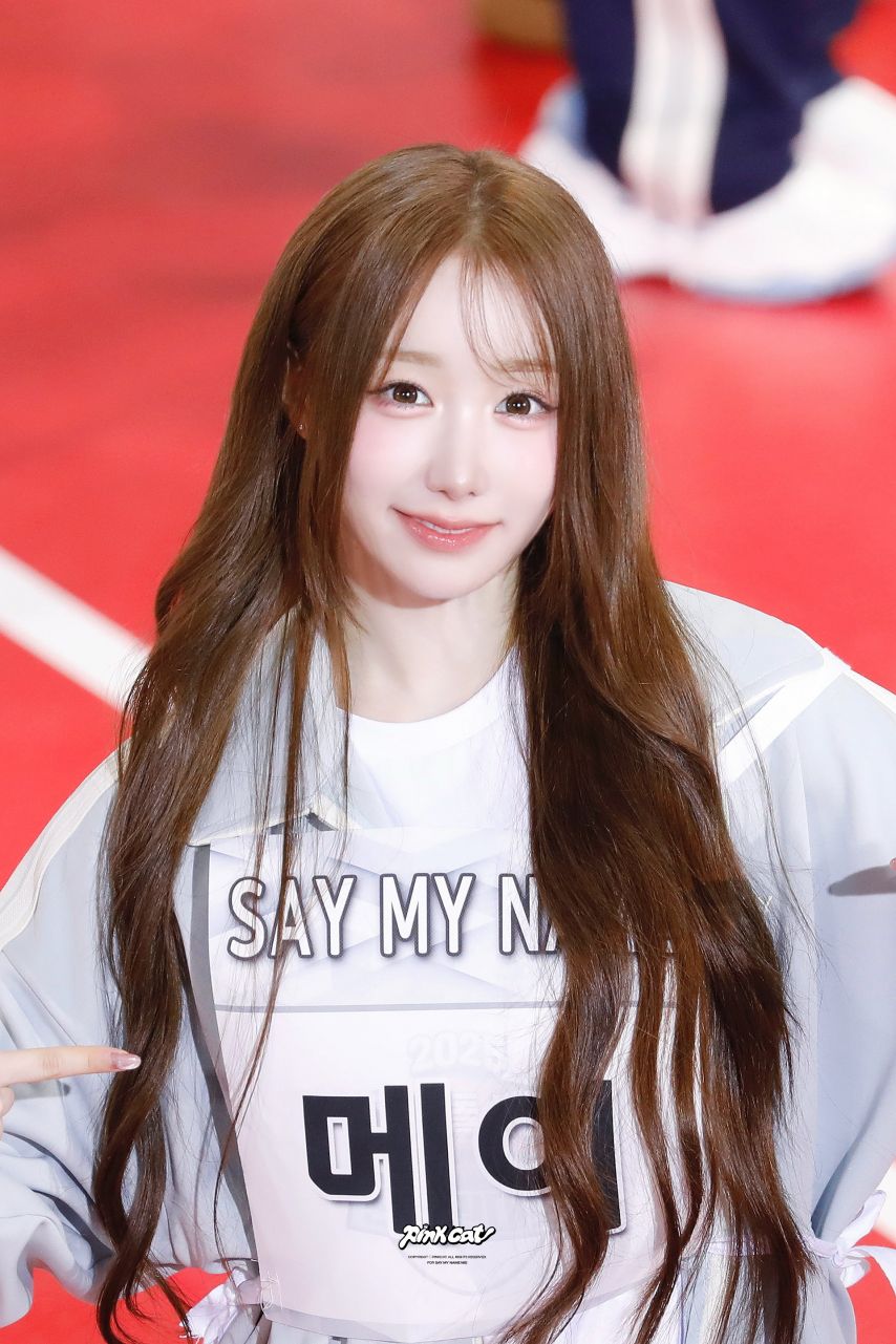 바로 앞에서 본 꽉 끼는 긴팔티 르세라핌 김채원