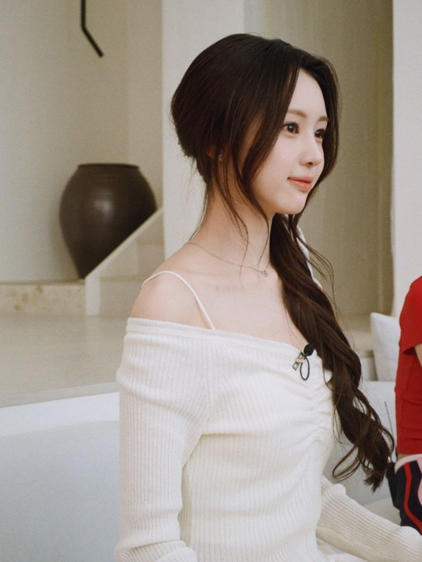 쇼파에 걸터앉는 카리나의 뽀얀 허벅지살