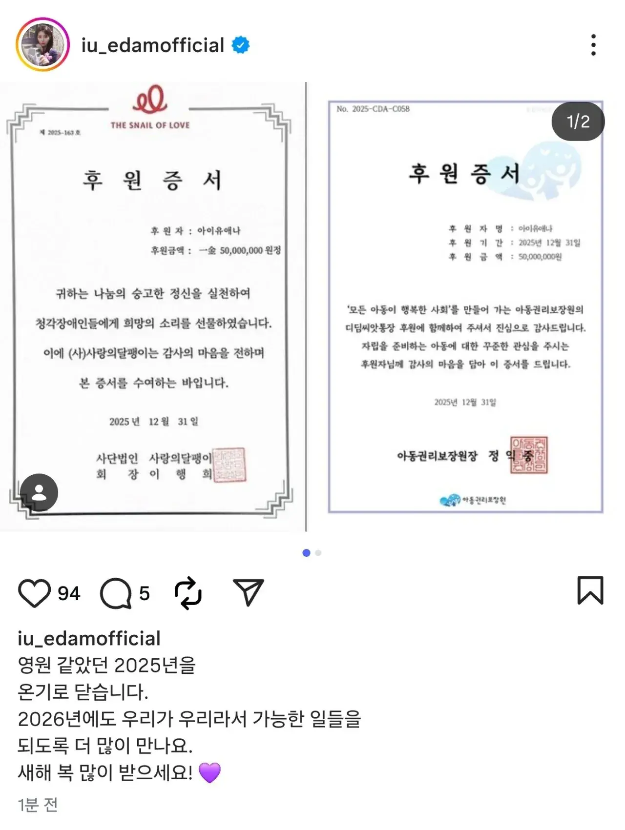 본인이 팬들의 사랑을 먹고 이렇게 커서 항상 저 이름으로 기부