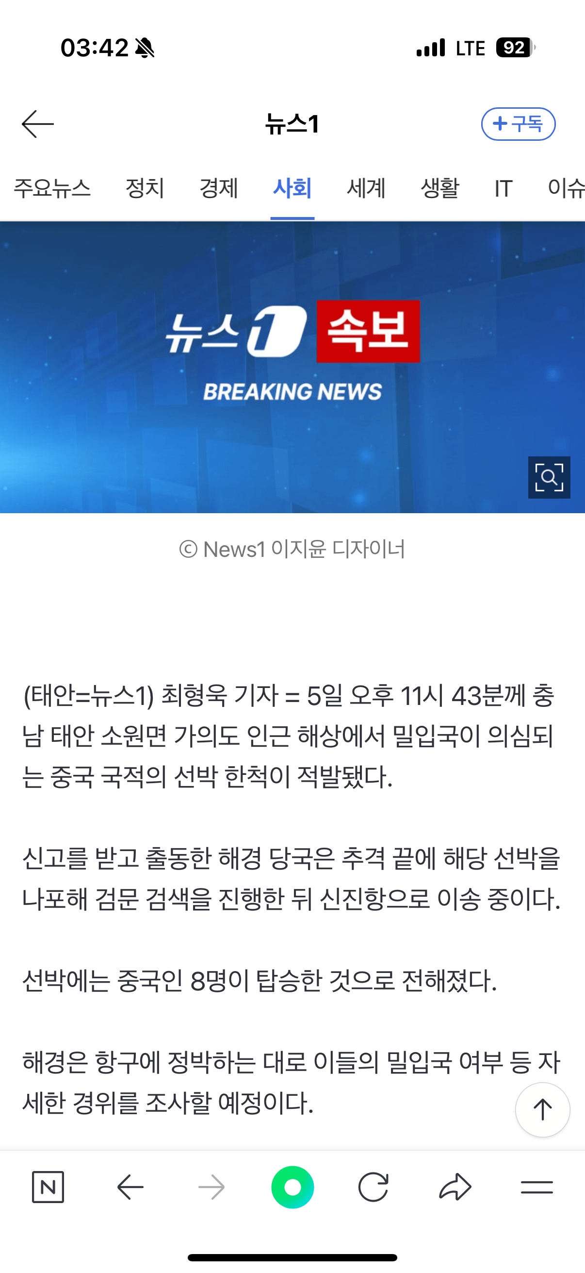 태안 선박 나포 - 중국인 8명 탑승 확인