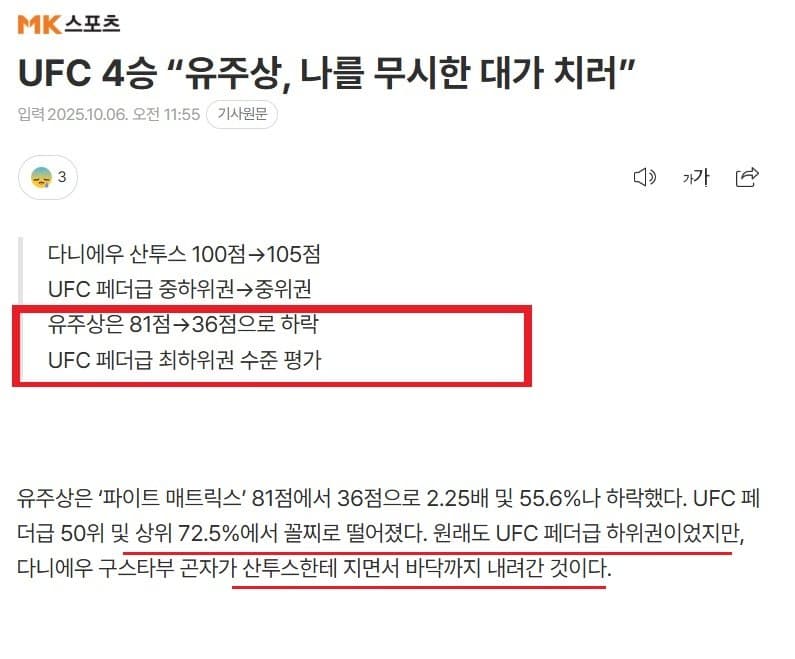 UFC 테무산 맥그리거, 유주상 하이라이트