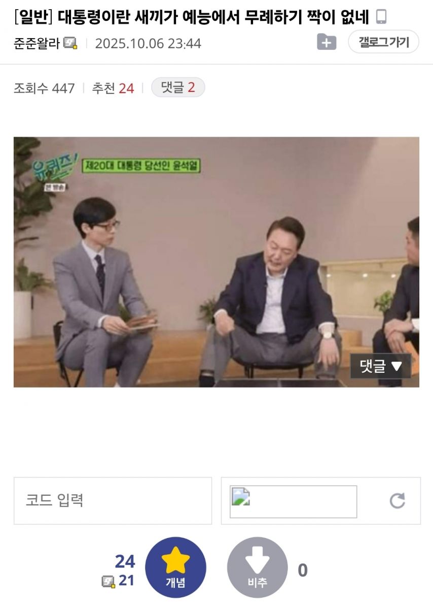 대통령이란 새끼가 예능에서 무례하기 짝이 없네.jpg