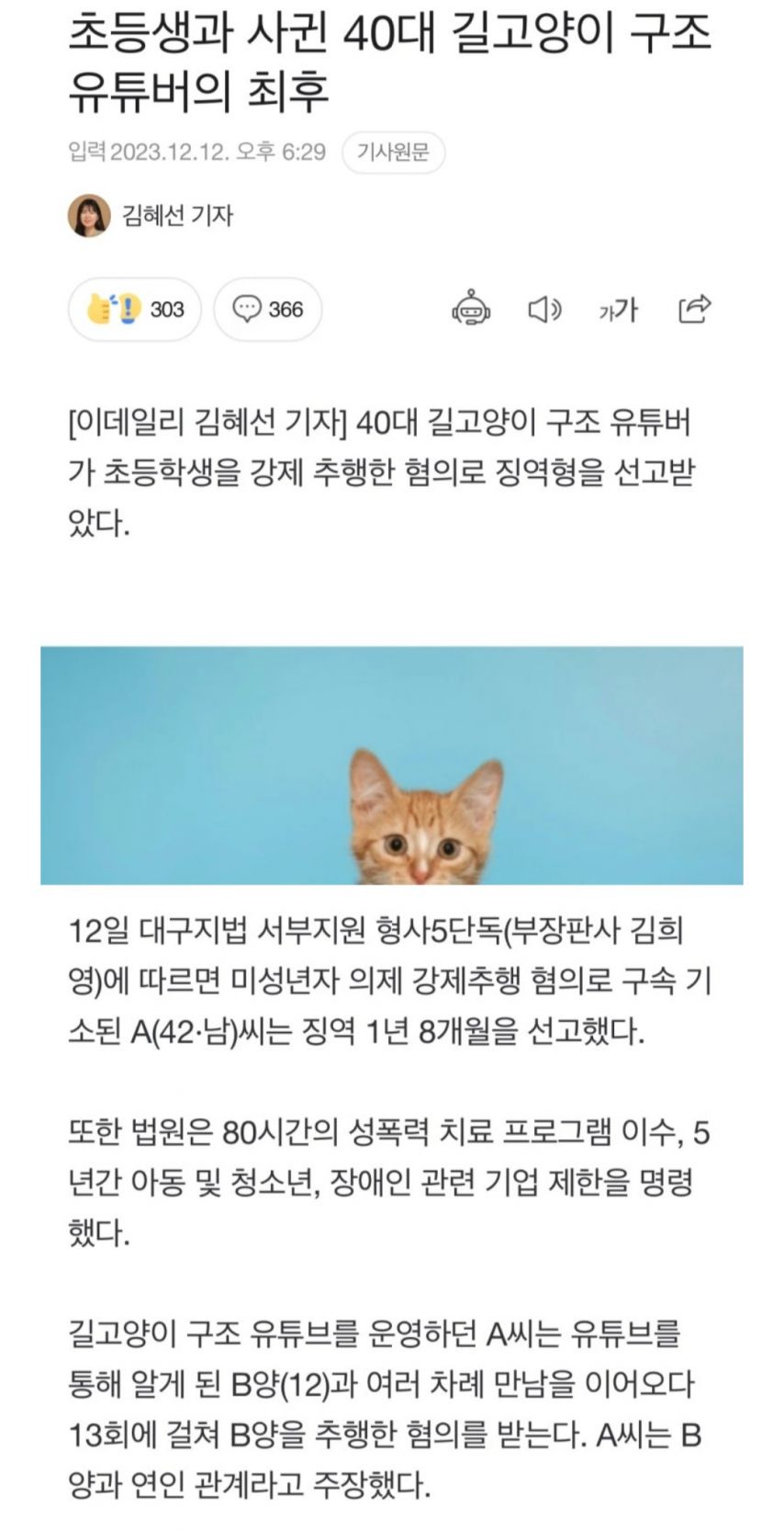캣대디 초등학생 성추행으로 징역형