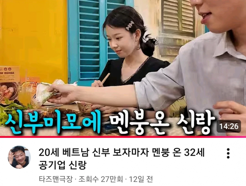 20살 베트남 신부랑 결혼한 32세 공기업 남성