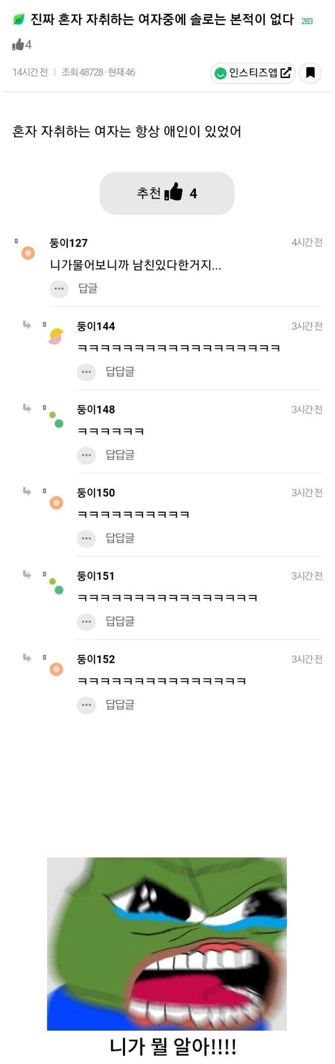 자취하는 여자 중에 솔로 없더라