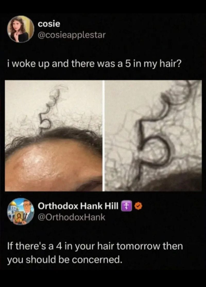 "자고 일어났더니 머리 위에 '5'가 있음"