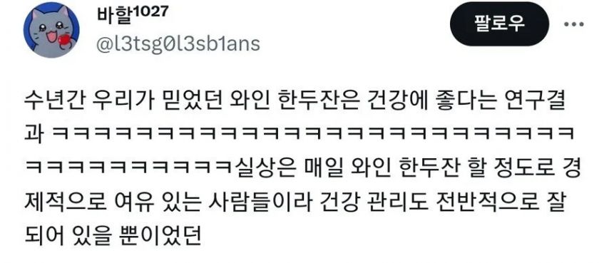 와인 한두잔은 건강에 좋다는 연구결과 사실은... ㅋㅋ