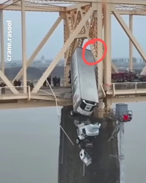 다리 위 중침 사고로 죽을뻔한 트럭 운전사