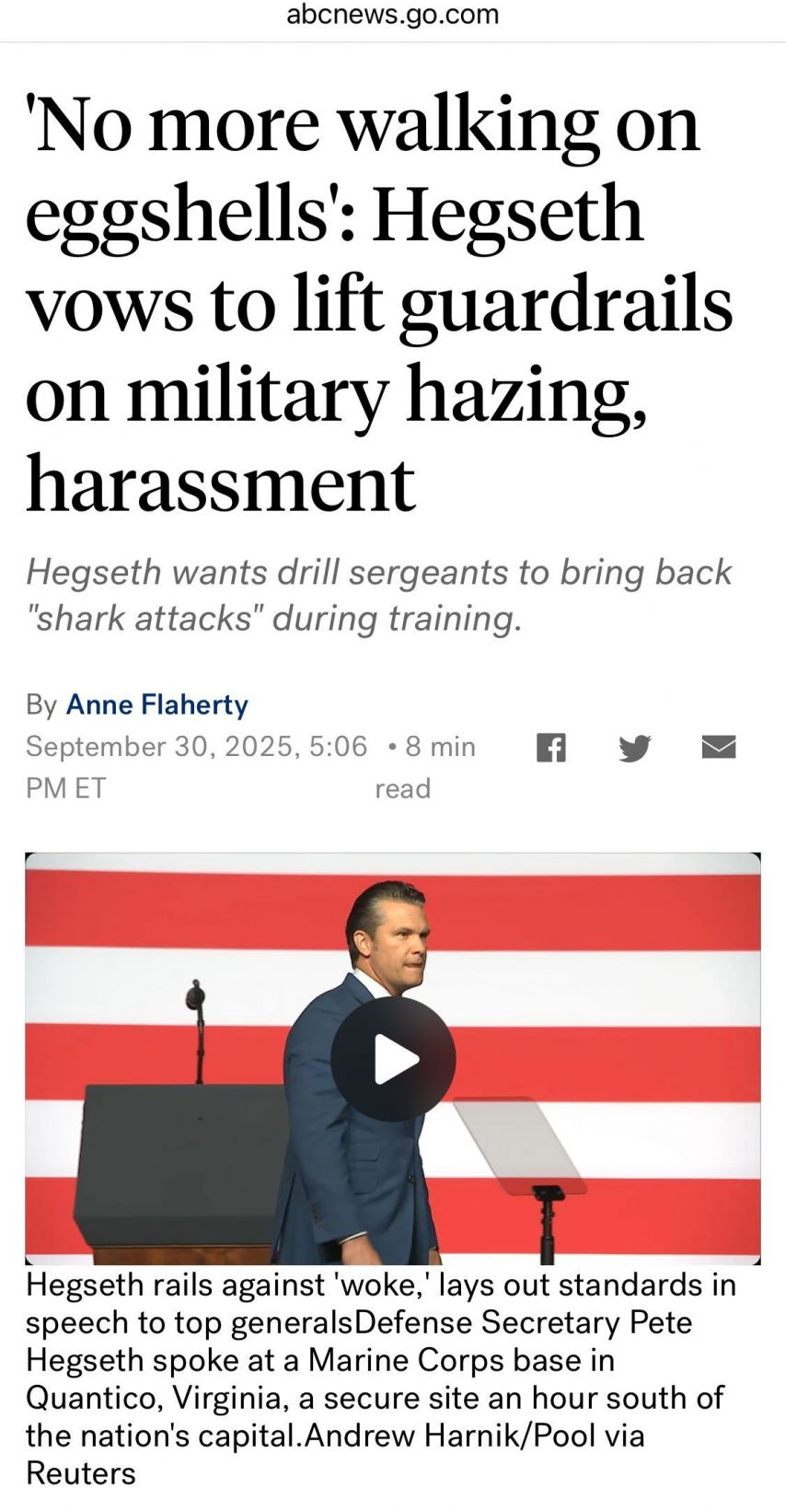 미국 국방부장관, "병사 상대 구타 공식적으로 허용하겠다"