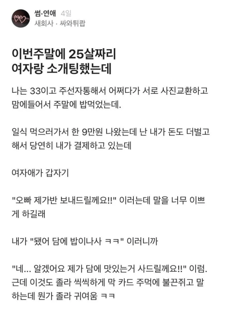 25살여자와 소개팅한 33살 남자ㅠㅠ