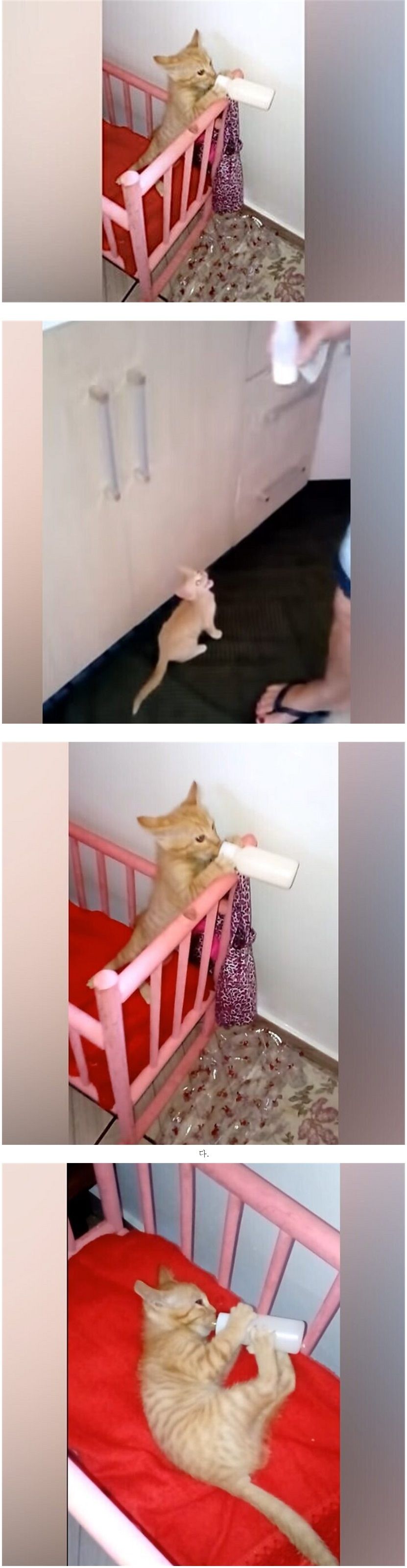 사람처럼 젖병 잡고 우유 마시는 고양이.