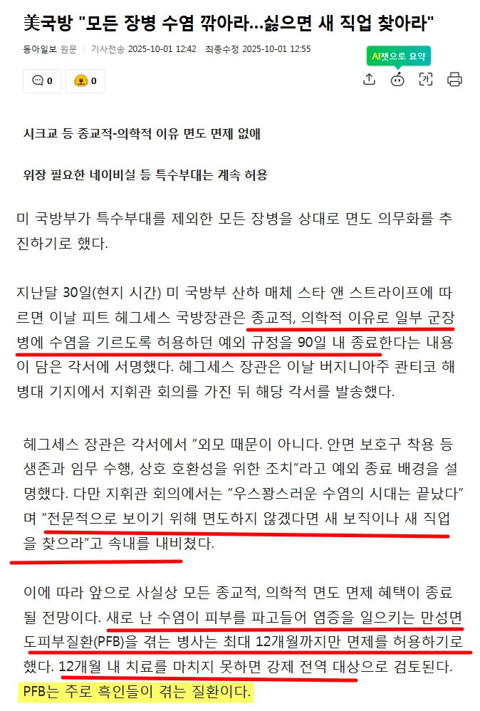면도 안하고 싶으면 특수부대 가던가 전역해라