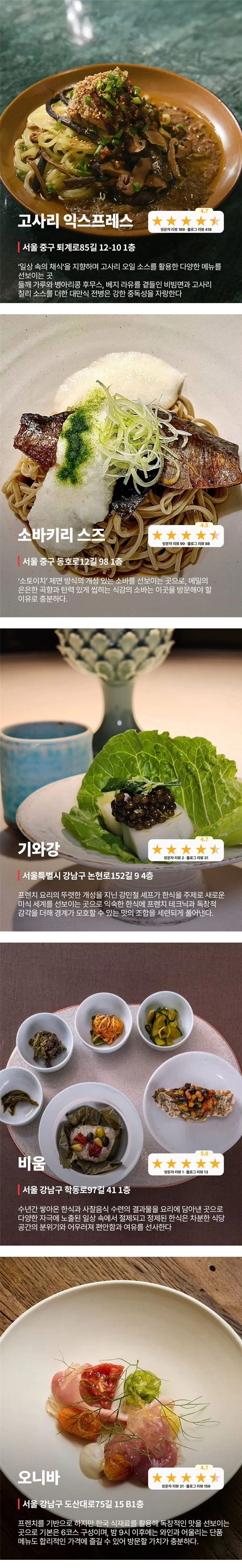 2026년 미슐랭 가이드 신규 매장 일부 공개.