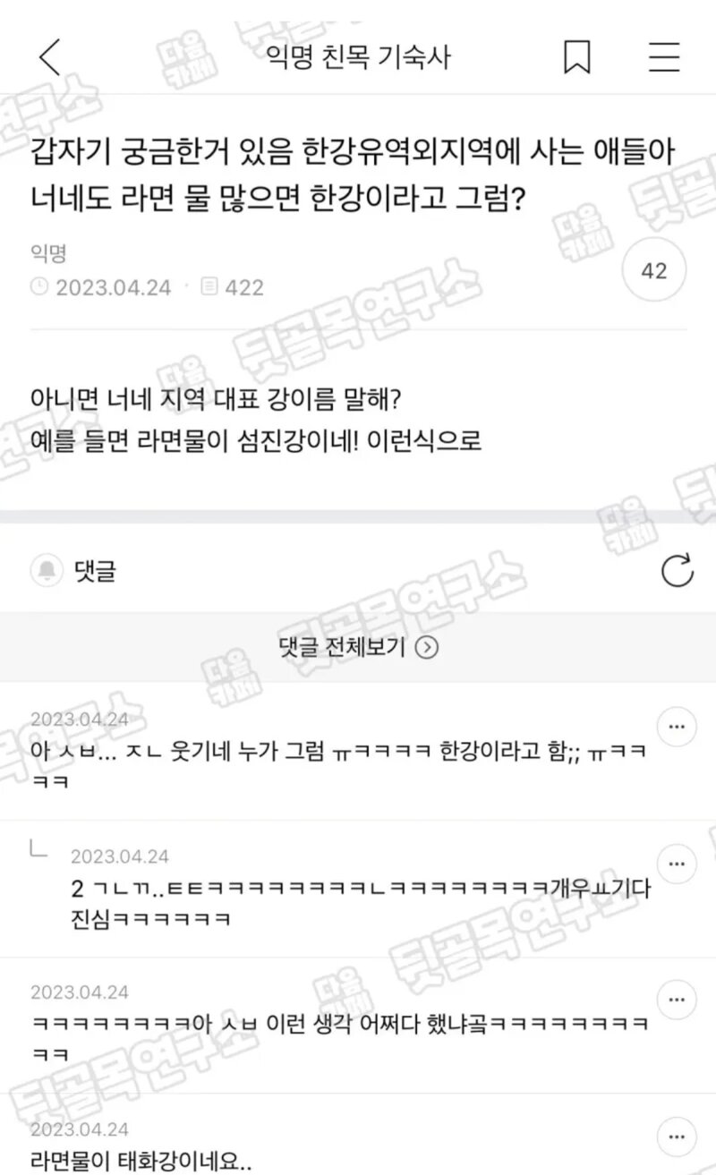 물 많은 한강라면을 지방에선 뭐라고 부름?