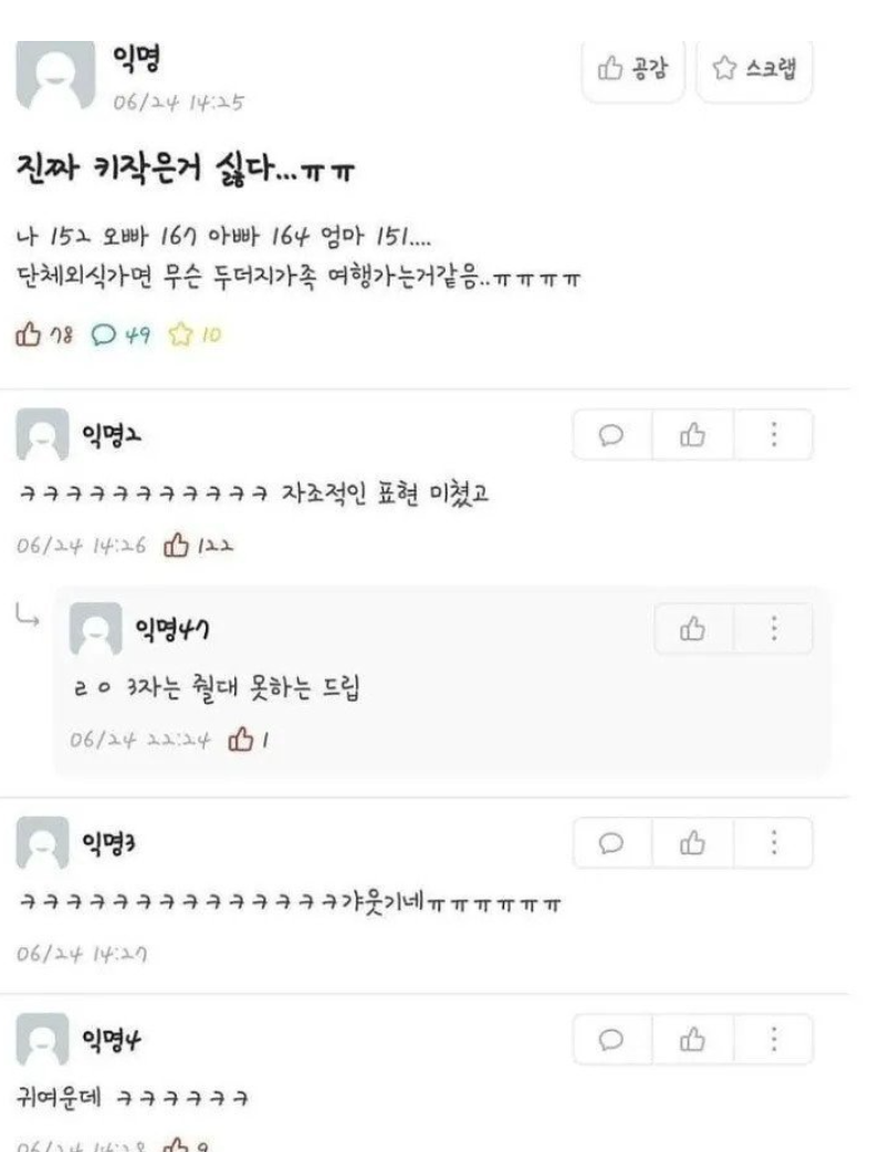 키작은 가족의 비애 ㅠㅠ 웃픔 ㅋ