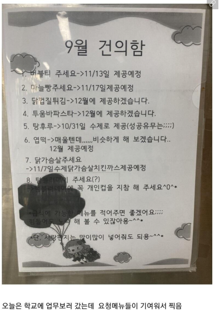 요즘 학교 급식 건의함ㅎㅎㅎ