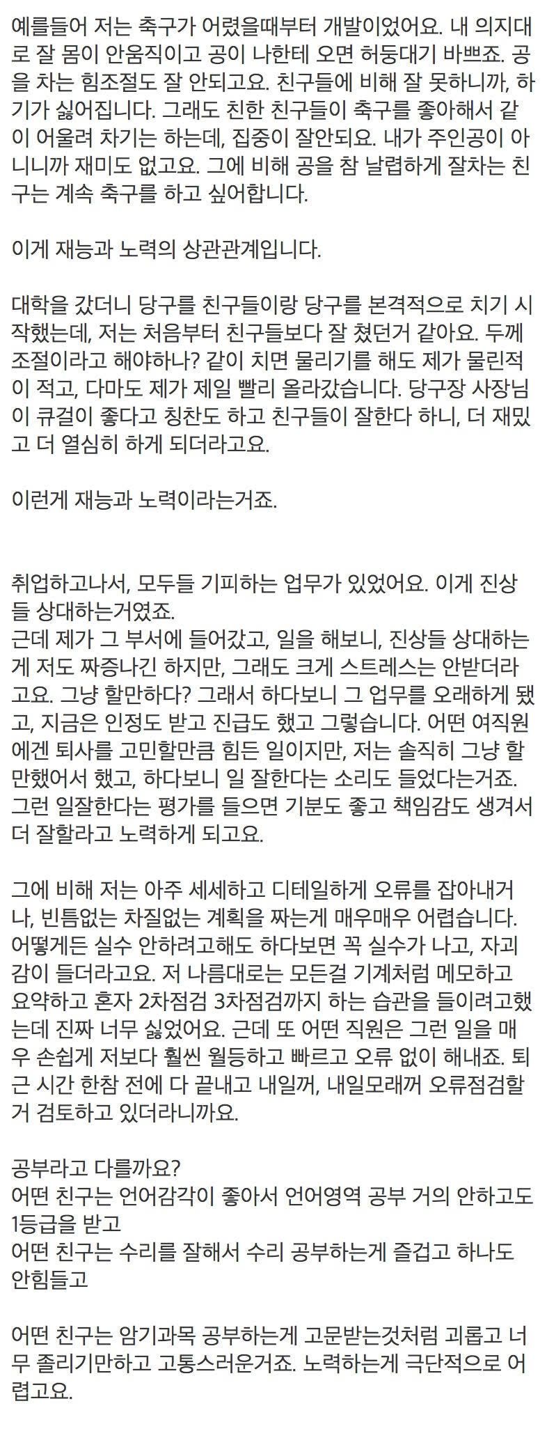 노력은 재능에서 비롯 된다는 썰