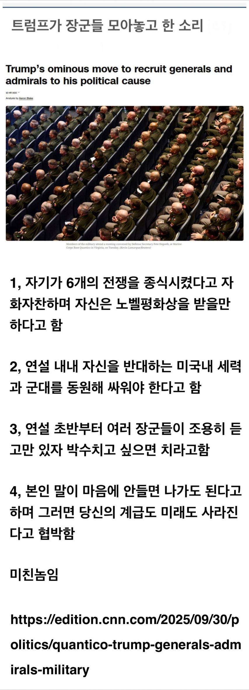 오늘 실제로 트럼프가 장군들 모아놓고 했던 말ㄷㄷㄷ