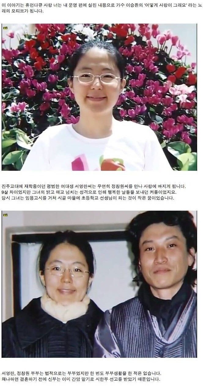 뮤직비디오에 휴먼다큐 너는 내 운명 편을 싣고자 했으나 남편분 정창원님이 반대하셔서