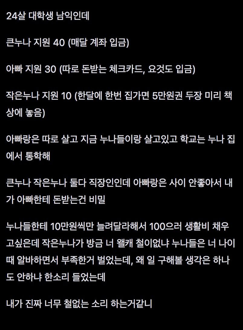 대학생 생활비로 누나랑 대판 싸우고 집나옴