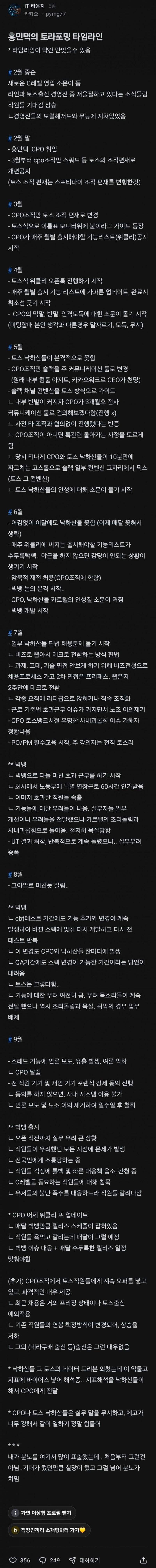 블라인드에 올라온 카톡 업데이트 히스토리