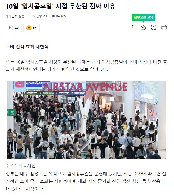 내수보다는 해외에서의 지출이 더 커서... 실질적으로 내수 증진 효과가 미미했기 때문이라는 분석이네요.