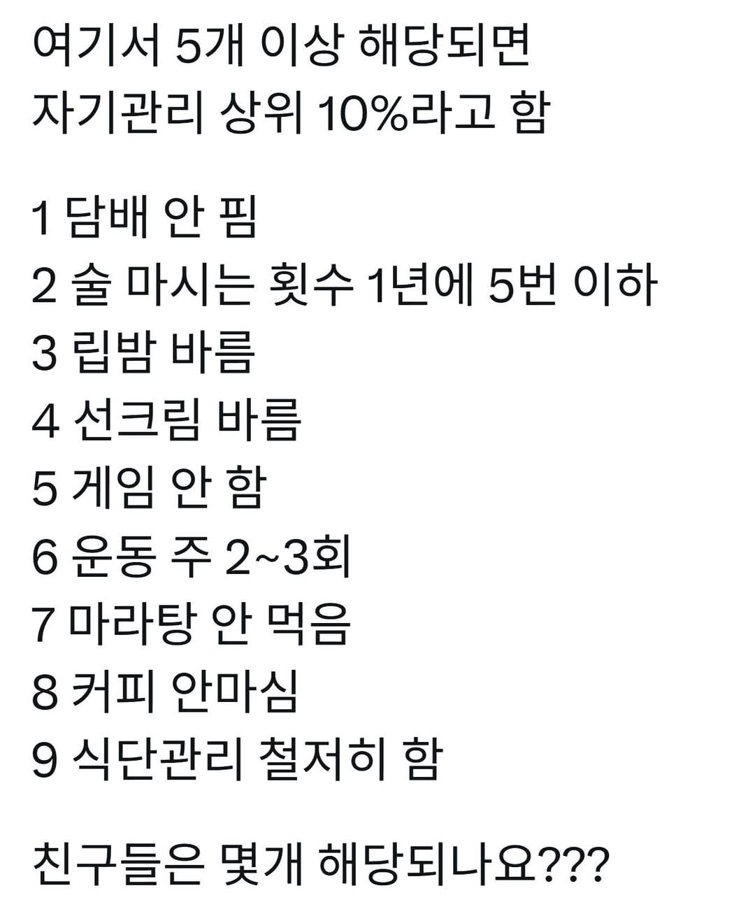 5개 이상 해당되면 자기 관리 상위 10%