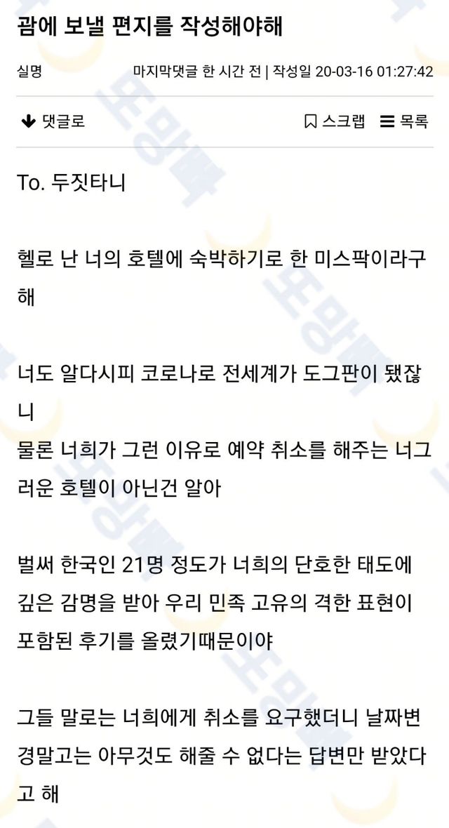 코로나 초창기 전설의 괌 호텔 예약 취소 요구 편지...