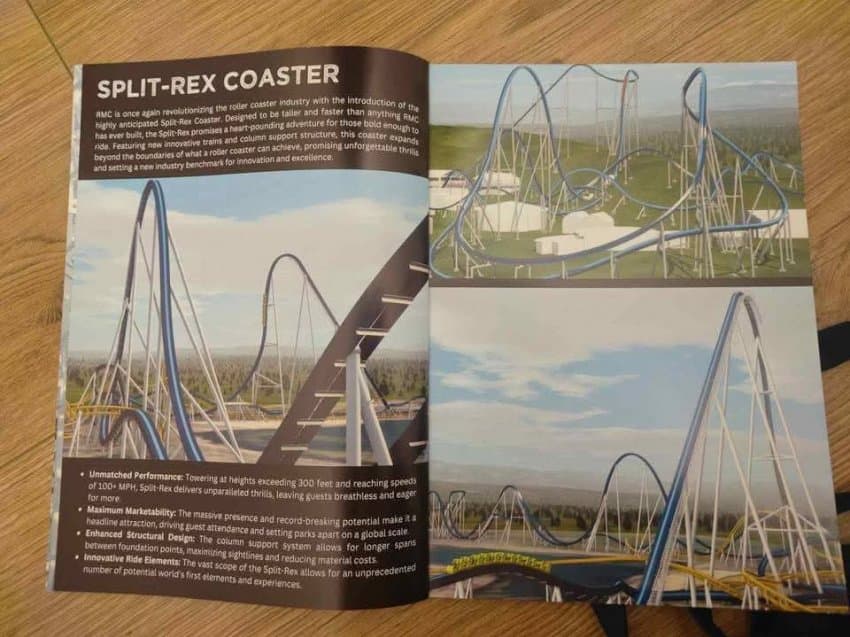 이번 IAAPA 유럽에서 롤러코스터 신규 모델이 발표됨, 기존에 발표만 됐고 판매된 적은 없는 싱글레일 코스터 T-rex 모델을 개량한 Split-rex 모델