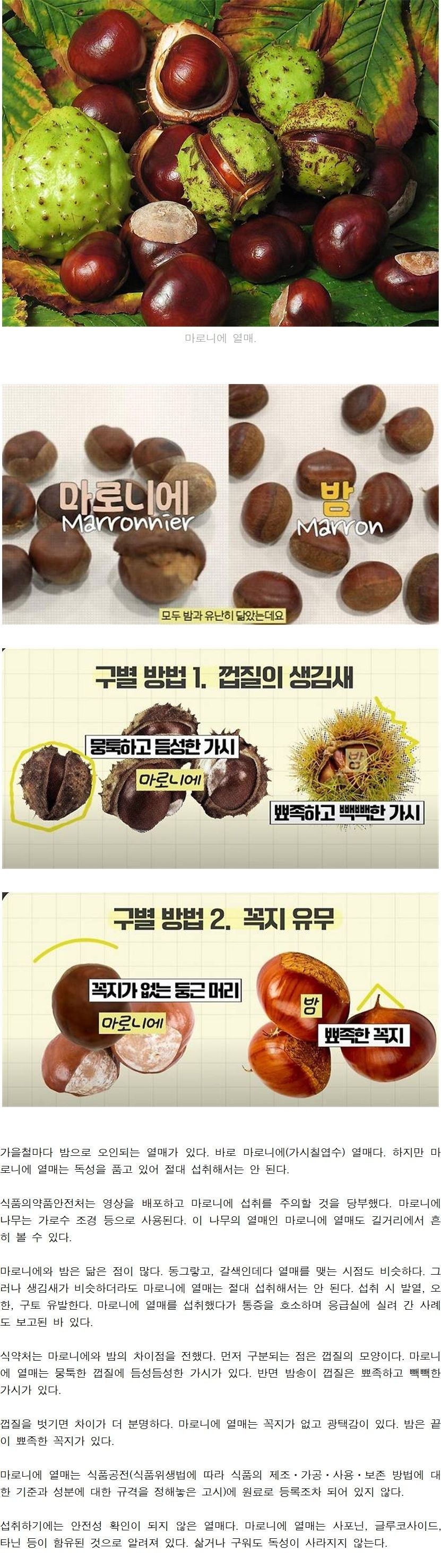 구워서도 삶아서도 먹으면 안 되는 밤처럼 생긴 열매.