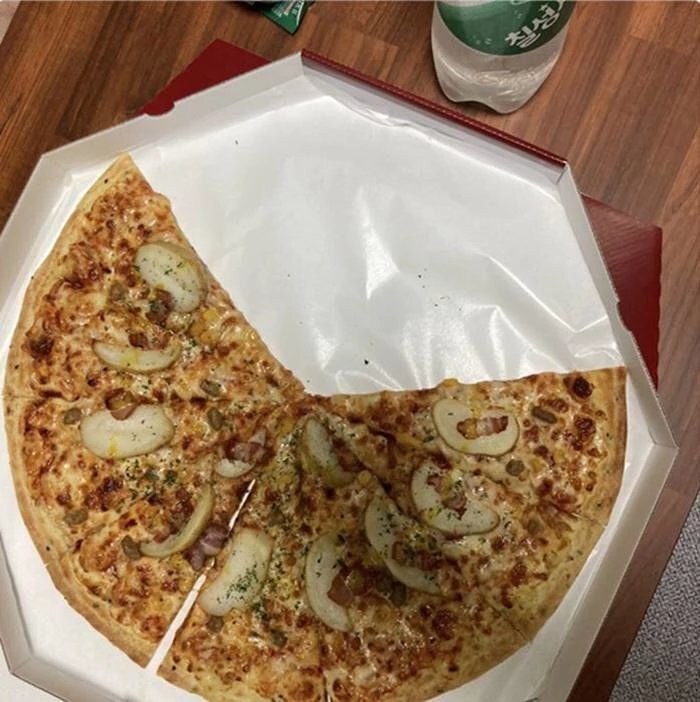 레귤러 시켰는데 잘못 만들어서 4조각 빼고 줌