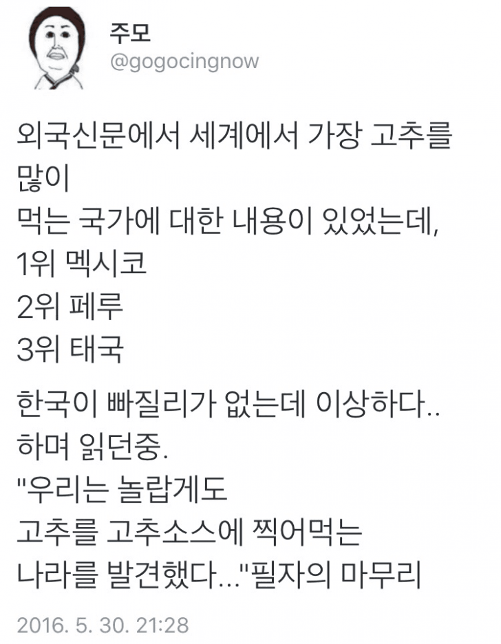 세계에서 고추를 가장 많이 먹는 나라에 한국이 없음