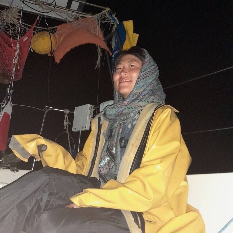 ‘가자로 향하는 천개의 마들린호’ 선단에 참여해 항해 중인 해초 활동가. 제공 강정친구들, 개척자들