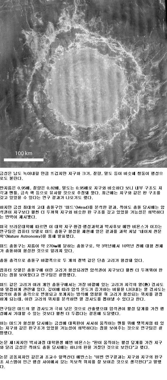 금성 최대 충돌구 미드 바깥쪽으로 두 개의 절벽같은 고리가 형성돼 있다.