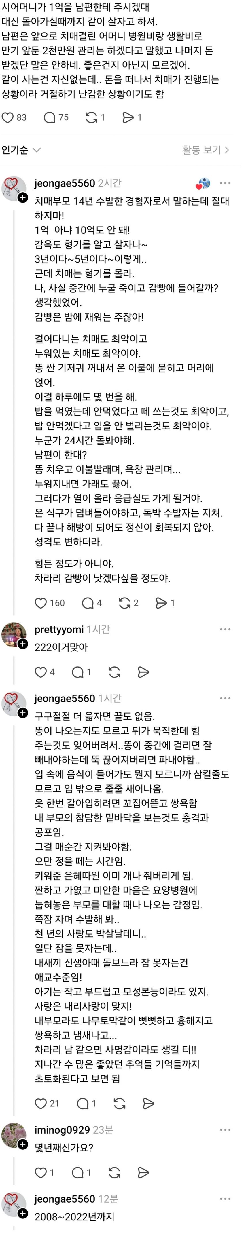 치매 부모 14년 수발한 경험자로 말하는데 절대 하지마.JPG