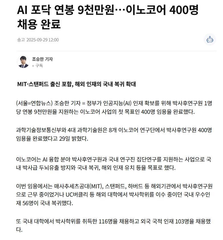 어떻게든 가용한 예산안에서 인재들 국내정착시킬려고