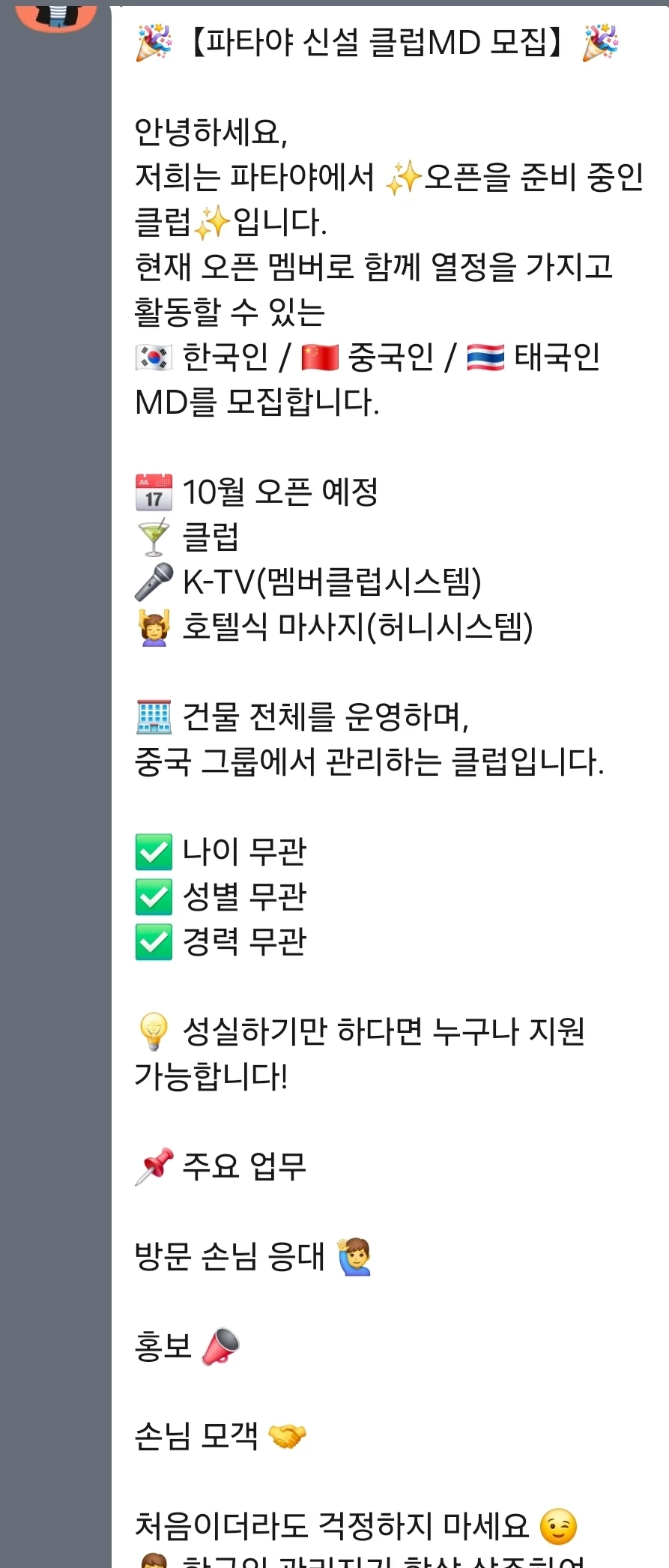 태국 교민 단톡방에 올라온 구인글
