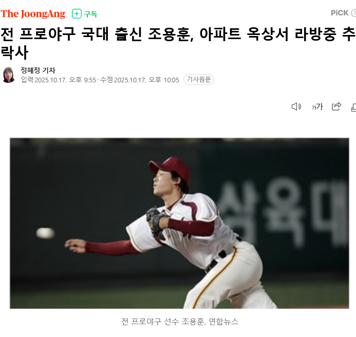 전 프로야구 국대 출신 조용훈, 아파트 옥상서 라방중 추락사