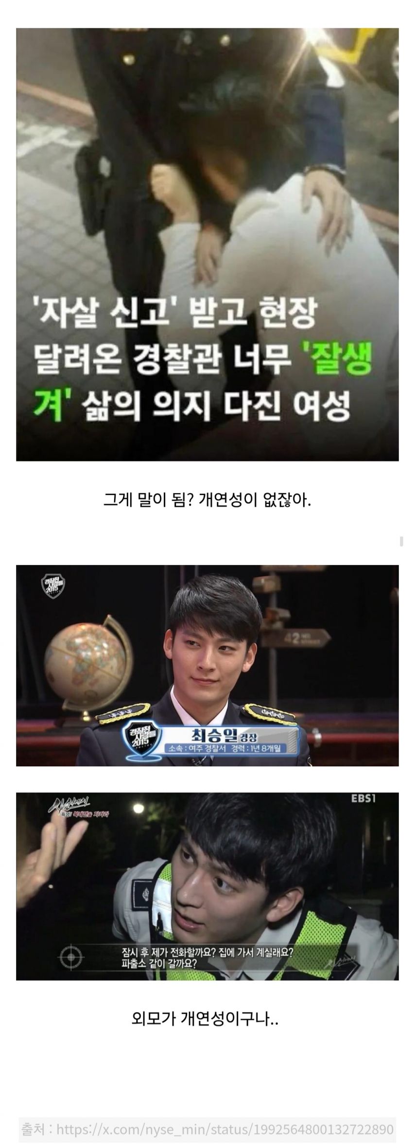 살자하려다 달려온 경찰이 잘생겨서 마음 다시 잡았다고?