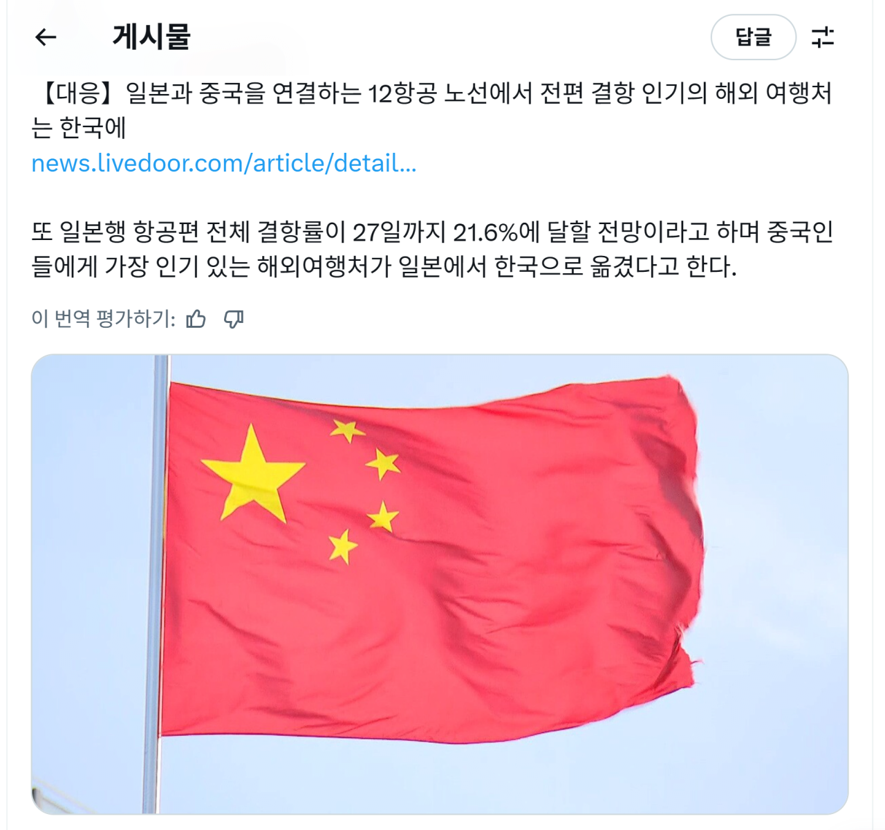 중국-일본행 항공편이 대거 취소되자 대체 여행지로 한국으로 몰린다고 함...