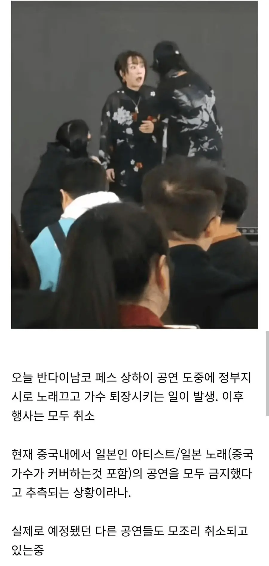 오늘자 한일령으로 공연도중 음악 꺼지고 무대 중지시킨 중국