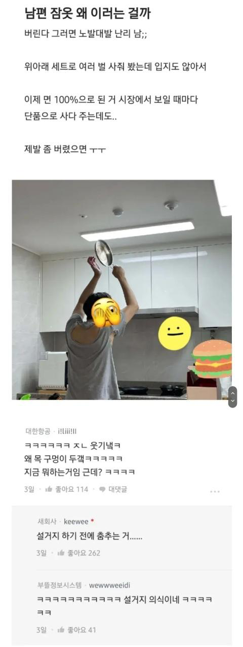 남편잠옷 왜이러는걸까요