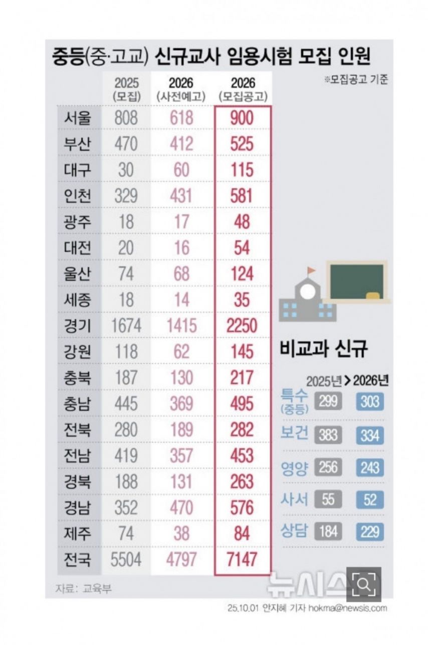 내년 중·고등 교사 7100여명 뽑는다…고교학점제 대비 '증원'