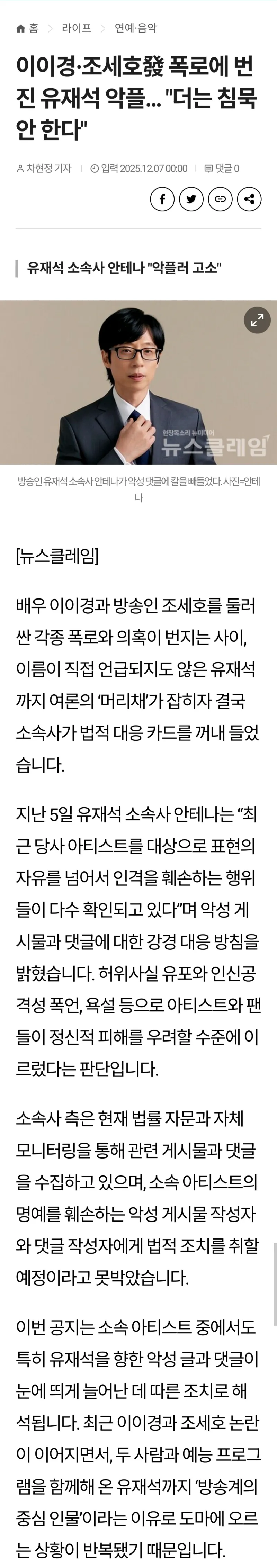 이이경, 조세호발 폭로에 번진 유재석 악플... "더는 침묵 안 한다"