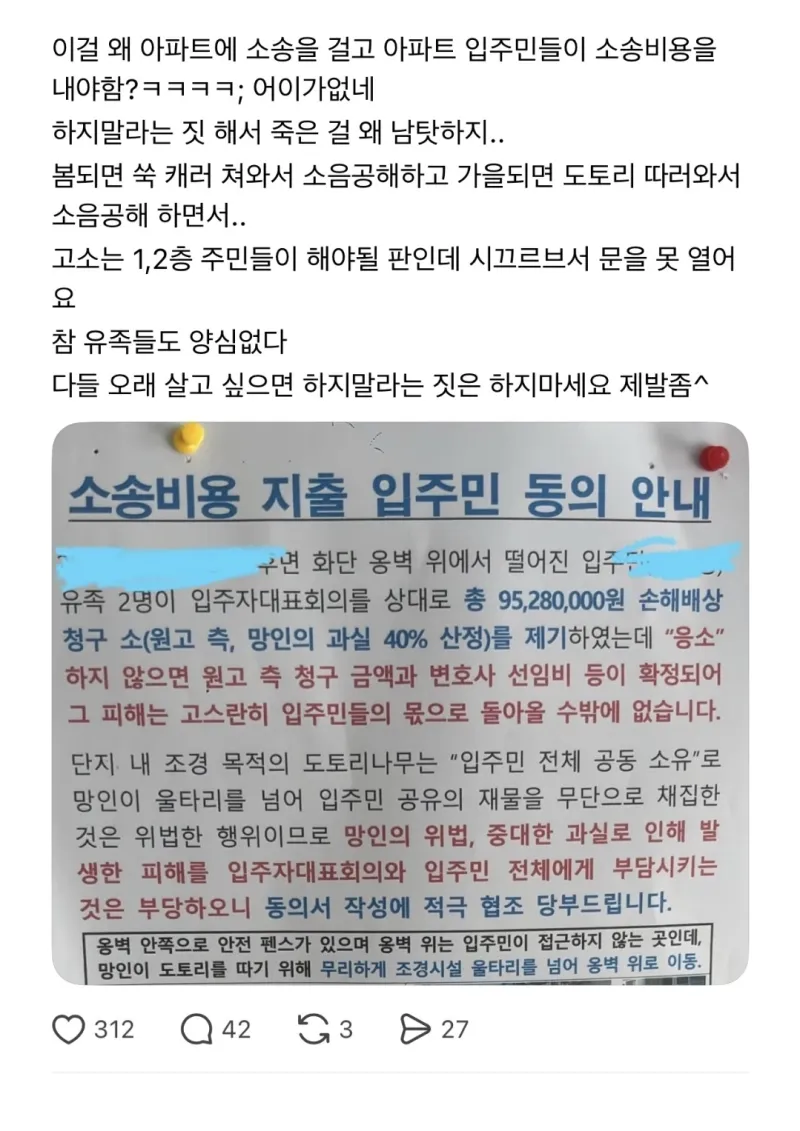 도토리 따다가 사망한 유가족이 소송검