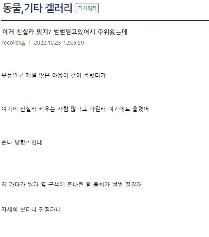 [동물] 길 가다 벌벌떠는 친칠라 주운 디시인... [댓글수 1]