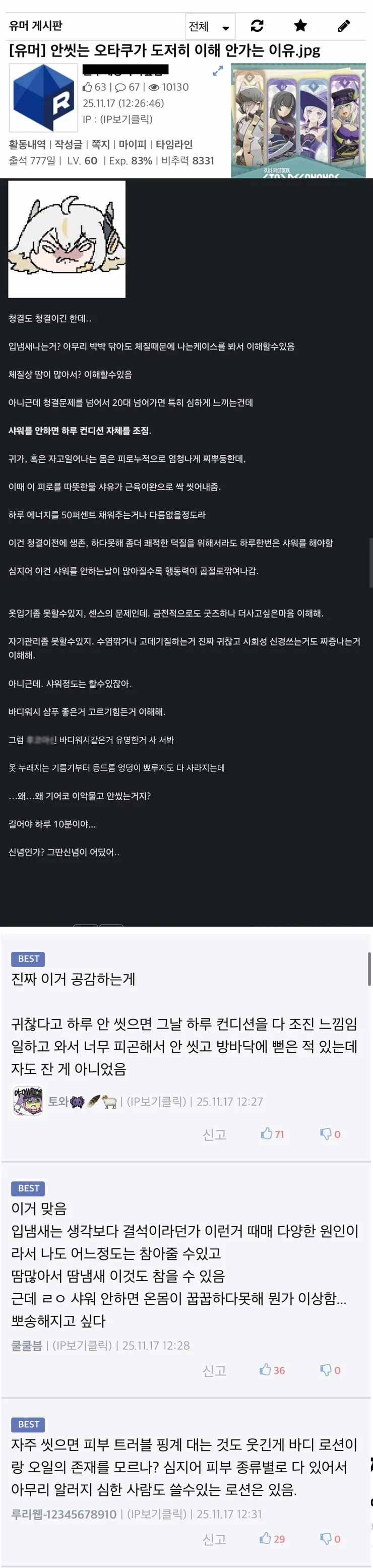 [유머] 오타쿠들아 샤워좀 해라 [댓글수 1]