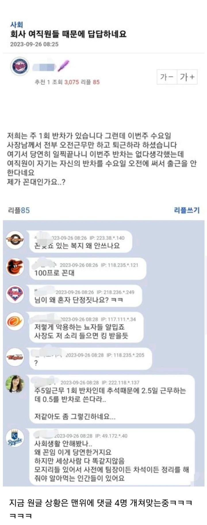 [유머] 회사 여직원들땜에 답답하네요 [댓글수 1]