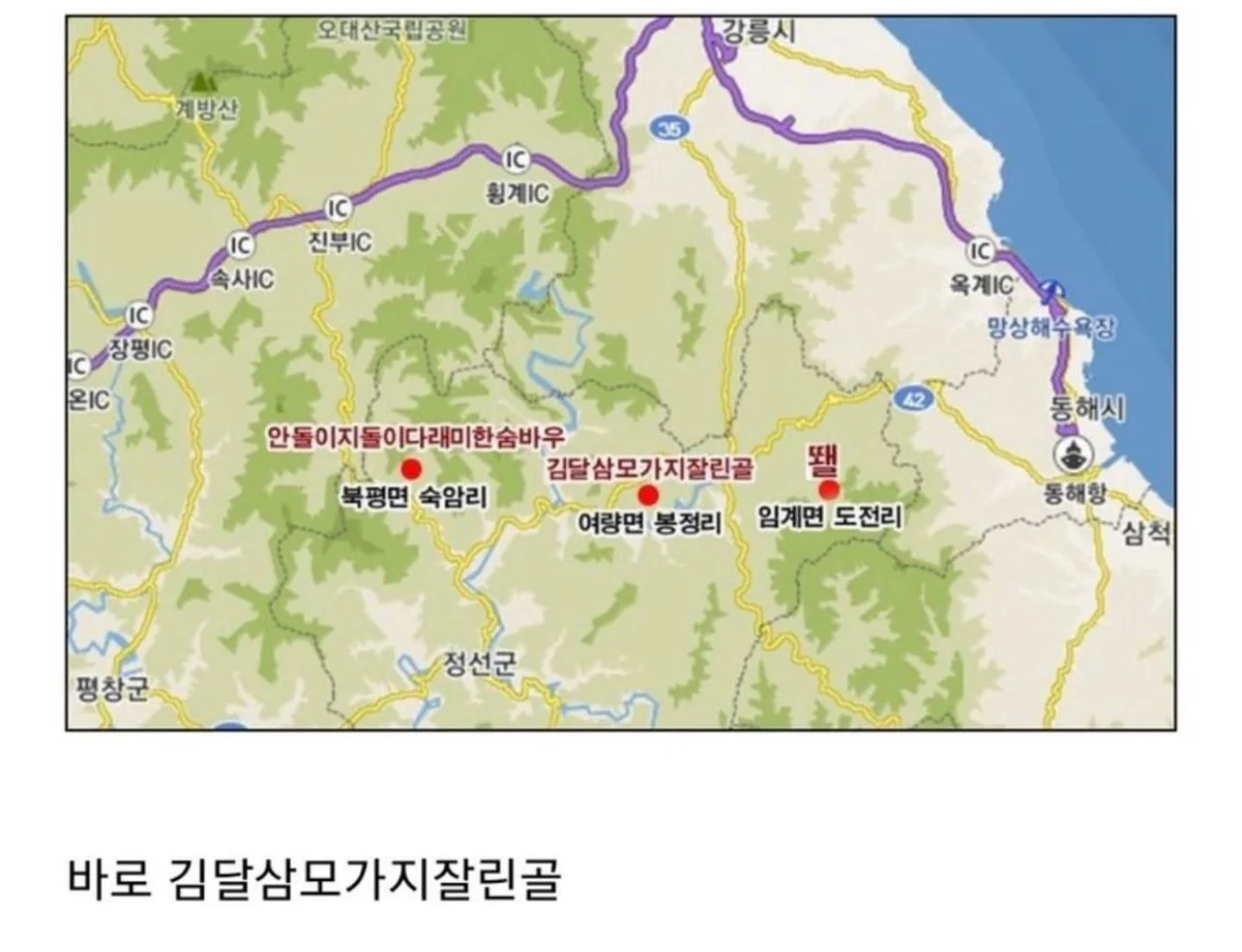 아, 그리고 바로 옆의 ' 안돌이지돌이다래미한숨바우 ' 는 한국에서 제일 긴 지명이라고 하고, 전세계에서는 8번째로 긴 지명 이라고 하네요~
