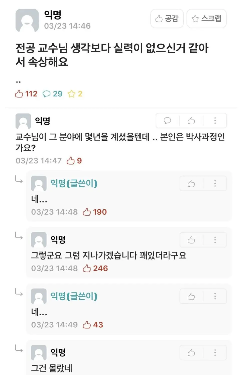[유머] 교수님이 생각보다 실력이 없으신거같아 속상해요 [댓글수 1]